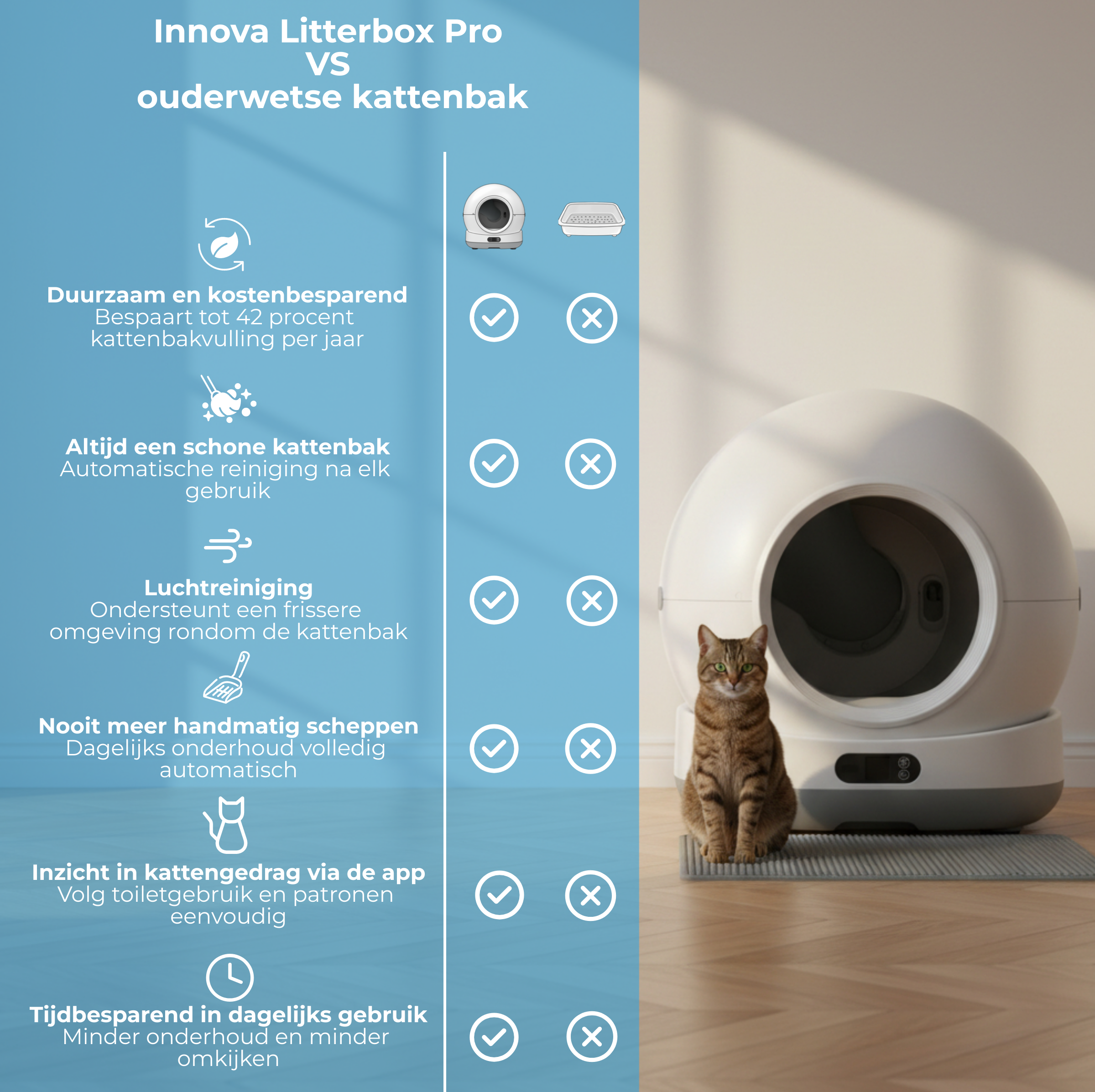 - Voor iedereen die klaar is met dagelijks scheppen en een automatische kattenbak wil die het werk overneemt.